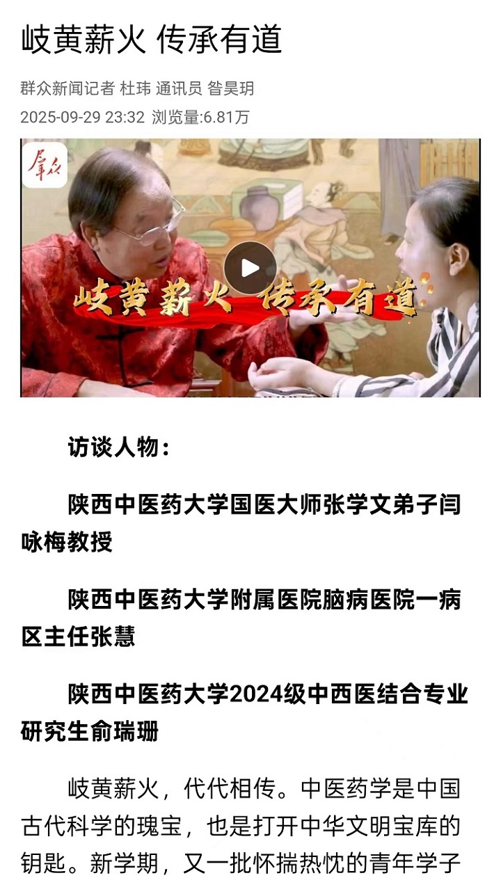 2025-09-29【陕西日报、群众新闻】岐黄薪火 传承有道