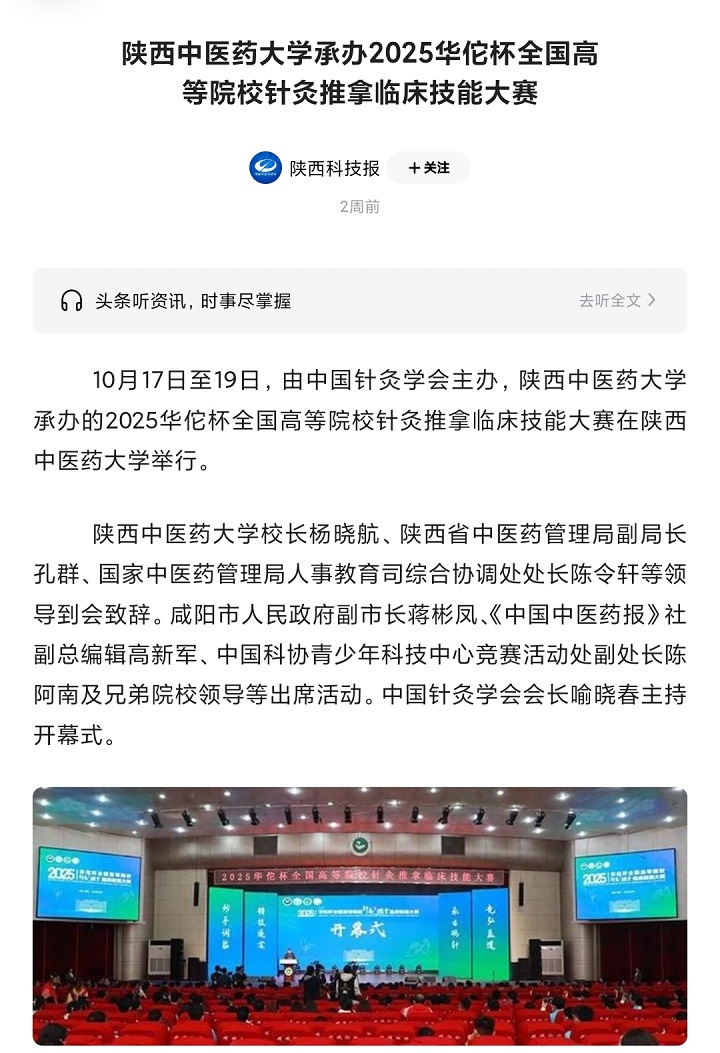 13.陕西中医药大学承办2025华佗杯全国高等院校针灸推拿临床技能大赛_陕西微校园