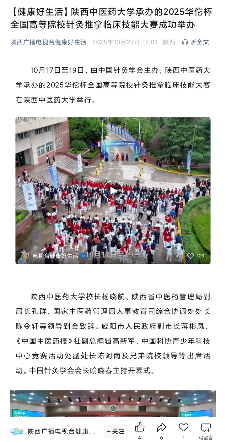 15.【健康好生活】陕西中医药大学承办的2025华佗杯全国高等院校针灸推拿临床技能大赛成功举办_陕西广播电台健康好生活