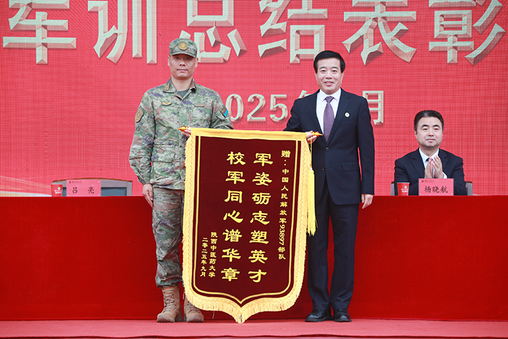 蒲济生代表学校向承训部队赠送锦旗,对全体教官的辛苦付出表达了谢意。