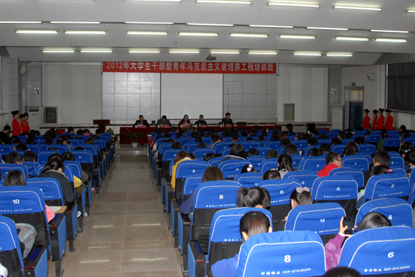 为了迎接党的十八大召开,进一步加强对青年学生的思想政治教育,提高学生干部的政治理论水平、组织协调能力和管理水平,增强学生干部的责任意识、大局意识,全面提升学生干部的综合素质,构建一支素质高、能力强、精干高效的学生干部队伍,充分发挥学生干部在实施“大学精神建设工程”和学风建设中的示范带头作用,推动我校学生管理工作再上新台阶,按照学校党委工作安排,2012年3月15日-23日,我校举办了2012年大学生干部暨“青年马克思主义者培养工程”培训班。